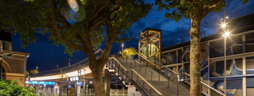 The innovative timber trainstation footbridge has been awarded the People’s Choice Award at the annual Dutch timber design awards (Nationale Houtbouwprijs) 2025. The bridge has a loadbearing timber structure as well as a timber deck. In addition, the elevator shafts have a timber structure.