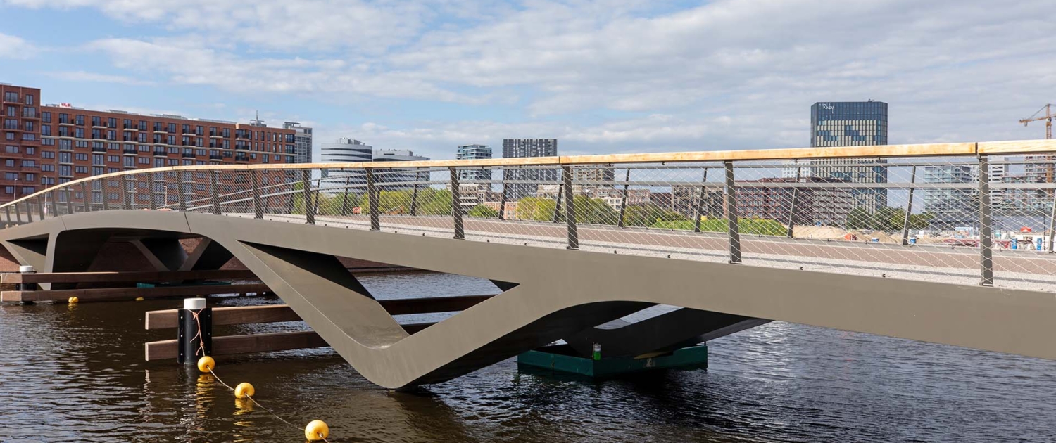 During the rainy season, the park will function as a reservoir for collection and storage of excess rainwater. This prompted us to come up with an innovative idea: diamond-shaped steel columns with an integrated French-drain at the bottom that function as water reservoirs. This enables the bridge to play an active role in flood prevention.